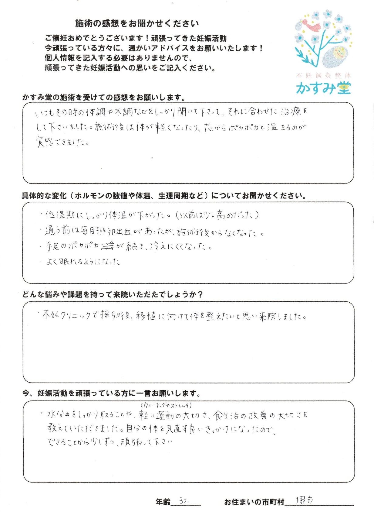 かすみ堂の施術を受けての感想をお願いします。